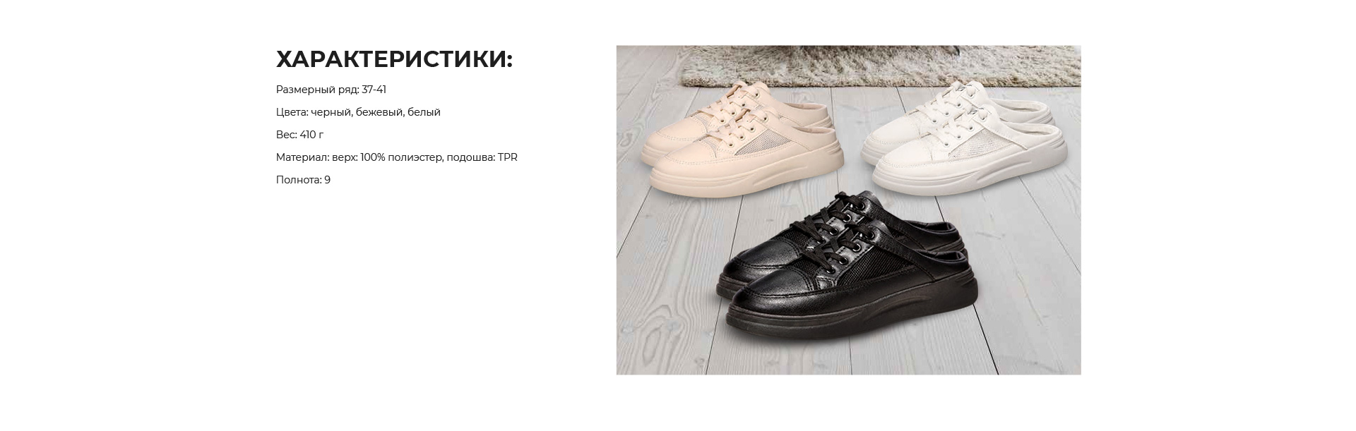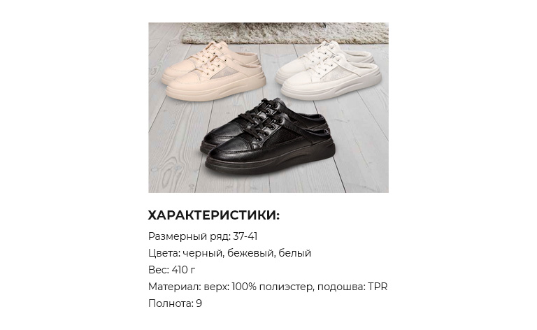 - Материал: верх - 100% полиэстер, подошва – TPR.